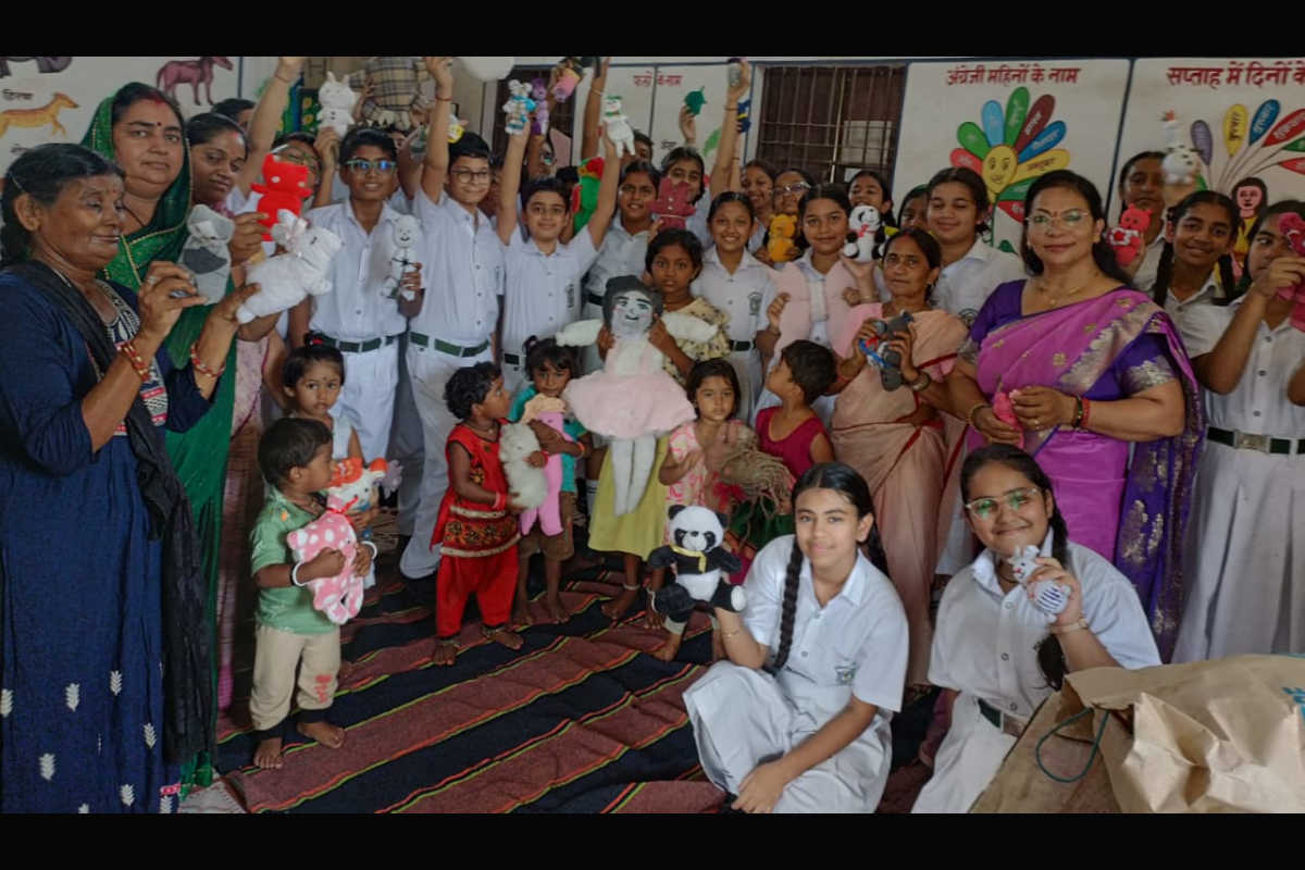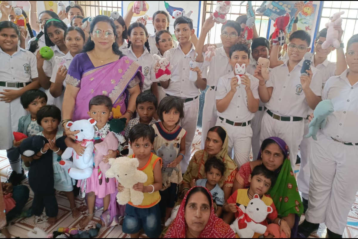 These handcrafted treasures created by the students were then lovingly distributed among children of various Anganwadi centers in Nardaha, bringing radiant smiles and moments of delight. Through this endeavor, the students not only revived forgotten scraps of fabric but also wove happiness into the lives of many, proving that sustainability can be both purposeful and joyful.